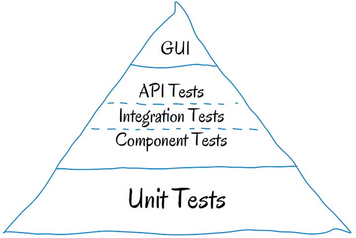 La pirámide representa las tres capas principales del testing. La interfaz de usuario, el Servicio y la unidad.